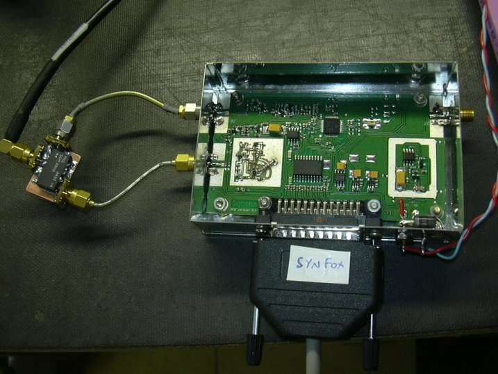 Lorsque F1RHR avait proposé la publication de la description exhaustive du SynFox, un double synthétiseur UHF N-Fractionnel à haute résolution basé sur ASIC dédié, dans le proceeding de CJ2008, j'avais tout de suite compris que ce synthétiseur apportait quelque chose de révolutionnaire pour les réalisations radioamateur, tant du côté des possibilités en mesures qu'en émission/réception. En simplifiant à l'extrême, le SynFox comprend deux PLL, l'une couvrant de 950 à 1050 MHz, l'autre de 800 à 2000 MHz, le tout piloté par PC (port parallèle), avec une résolution du hertz, une vitesse de verrouillage extrêmement rapide, et une très grande pureté spectrale. La radio n'étant qu'une histoire de mélange de fréquences, il était facile d'imaginer toutes les applications possibles... entre 0 et 3 GHz, et plus en mélangeant avec un OL extérieur. La description complète, et en Français, du SynFox a été publiée par F1RHR, Christophe FOURTET dans le proceeding CJ2008, pages 59 à 114 et est disponible également ici Ayant