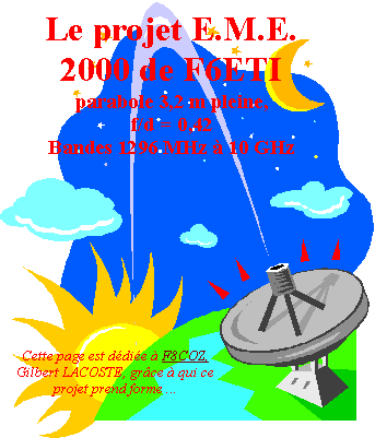 Cette page est aussi dédiée à F1ANH, Jean-Pierre LE CARPENTIER, décédé le 25 mai 2006, qui nous a bien accompagnés et aidés dans ce projet, et à F5FFT, Alain SALIC (ex FO4NK), décéde le 13 novembre 2011, avec la station de qui les premiers QSO EME sur 432 MHz ont été faits depuis Tahiti en 1989 et en 1990 en compagnie de F5FHI (décédé le 16 mai 2011). |
